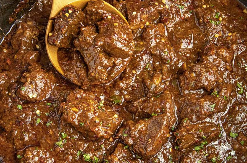 5. Simmer: Bring to a slow boil, then reduce heat to low, cover and simmer for about an hour, or until the meat is tender. Uncover and stir in lime juice and cornstarch slurry. Cook for a few more minutes, until the sauce has slightly thickened.