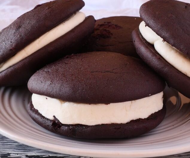 This classic whoopie pie recipe will make 8 jumbo-sized (muffin scoop) or 16 regular-sized (cookie scoop) whoopie pies.I like to fill these with classic vanilla American buttercream, but you can use any flavor you like.