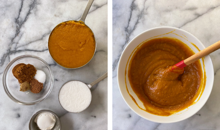 The swirl is a blend of pumpkin puree and lots of yummy Fall spices including cinnamon, nutmeg, ginger plus some salt and a touch of gluten-free four.
