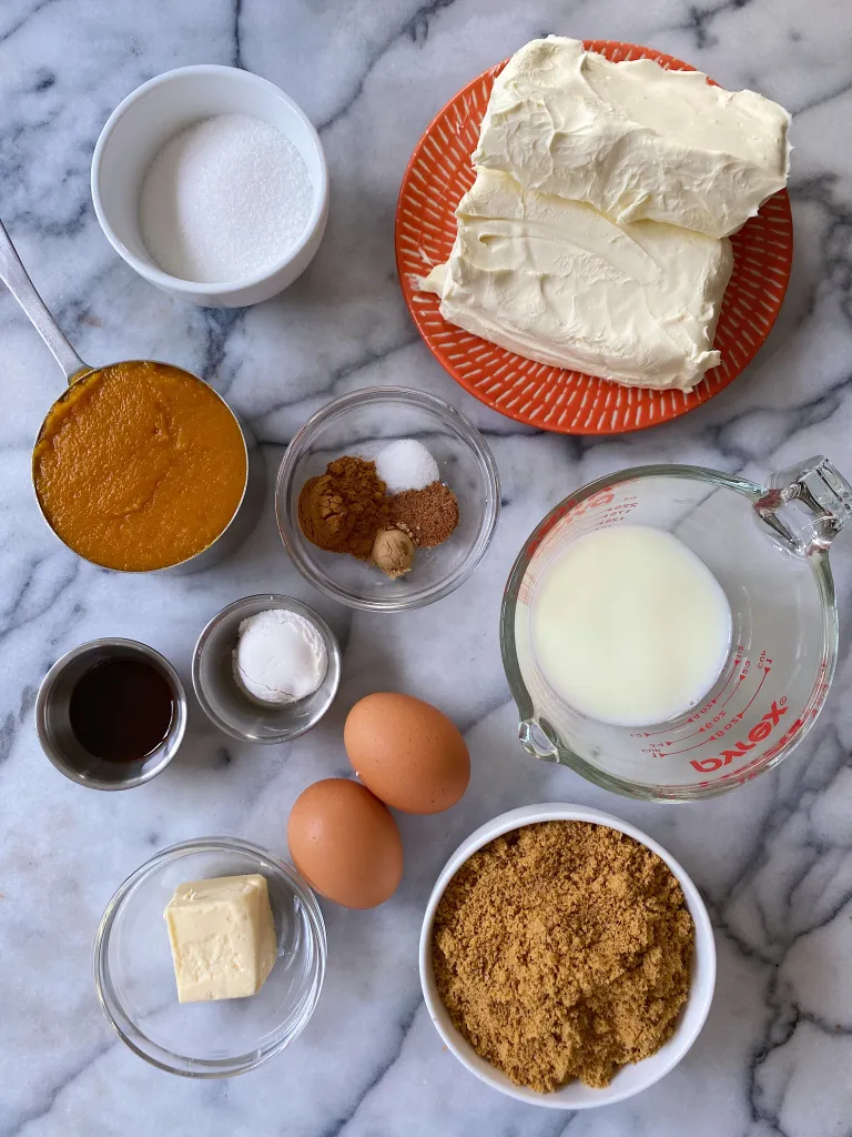 You will need the following ingredients: it looks like a lot because of the spices in the pumpkin layer but you probably have most of these ingredients in your pantry!