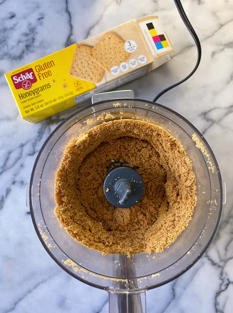 - scant 1 1/2 cups gluten-free graham cracker crumbs I used one (1 5.6oz box Schar Gluten-Free Honeygrams, finely ground into crumbs using a food processor)