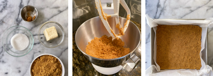 And the graham cracker base is mostly graham cracker crumbs plus a touch of melted butter, some cinnamon and a pinch of ginger for some warmth.