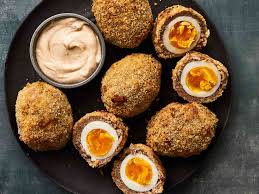 Mix GF breadcrumbs with paprika, garlic powder, salt, and pepper. - Wrap the eggs: